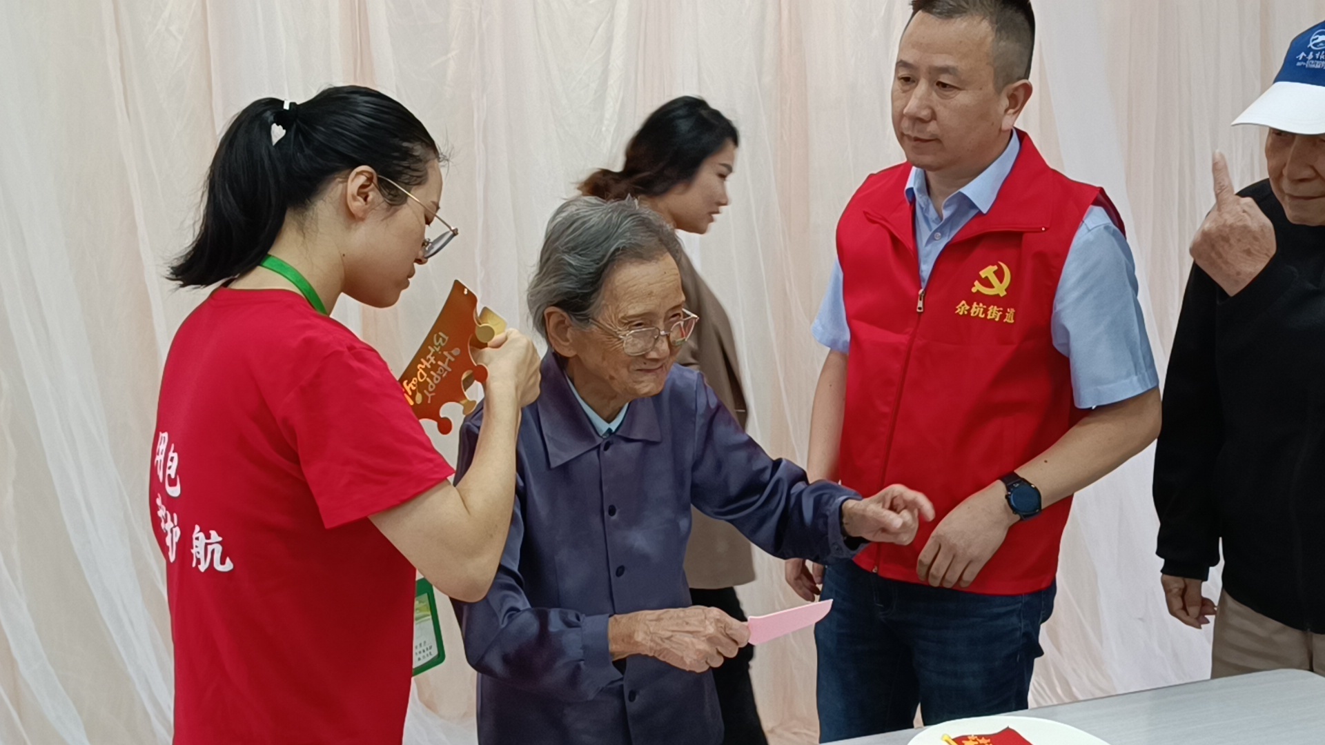 中共杭州宇諾相應(yīng)號召,組織黨員青年志愿者服務(wù)隊,走入余杭街道老街拆遷安置點--瑞和頤養(yǎng)中心,與長者一起喜迎國慶,歡度重陽!