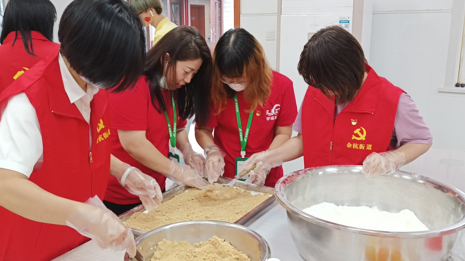 對首次接觸制作的黨員和長者們可謂是小錯不斷,但長者們和宇諾科技的黨員相互協(xié)助,做糕點的同時話話家常。