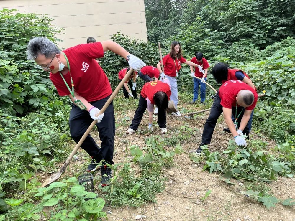 為祖國母親慶生之后,宇諾科技黨員服務(wù)隊前往庭院進(jìn)行勞作。隊員們拿起鐵鍬,幫助清理菜園子,將枯死的秸桿鏟除清到外面。