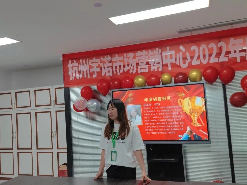 年度銷售冠軍張容上臺發(fā)言,從一名新員工到如今的年度銷售冠軍,她表示能取得如此的成績,正是因為宇諾科技提供了她發(fā)展的舞臺,她為能進(jìn)入宇諾遇到韓董事長這個伯樂而倍感榮幸。